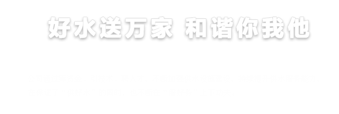公司作為公益類供水企業,推進國企改革的責任落實,多措并舉提升改革成效,增強國有經濟的競爭力和抗風險能力。公司以“保障城市優質供水?;保證供水誠信服務為人民?”為宗旨,以“安全供水、供安全水”為服務民生理念。